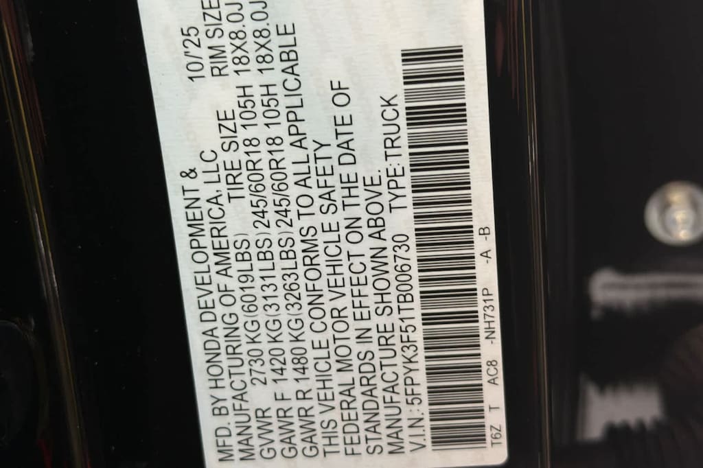 - 5FPYK3F51TB006730